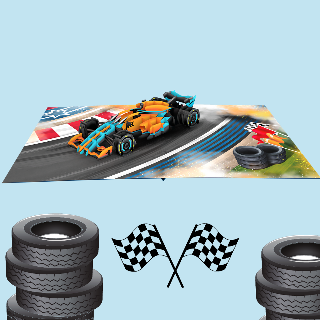 3D Racing Car Pop-Up Card - A Unique Motorsport - Themed Surprise for Formula 1 Fans and Birthdays