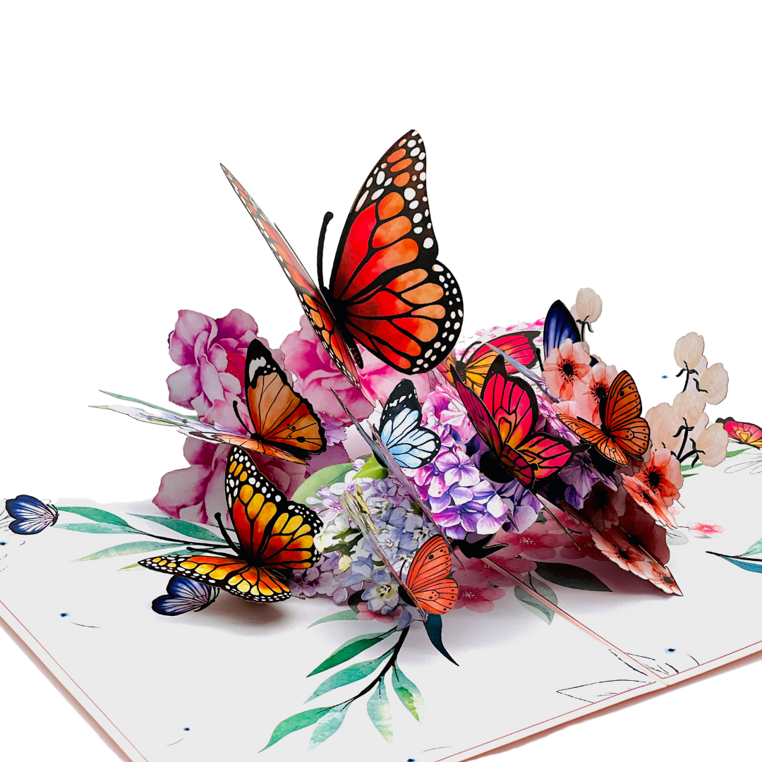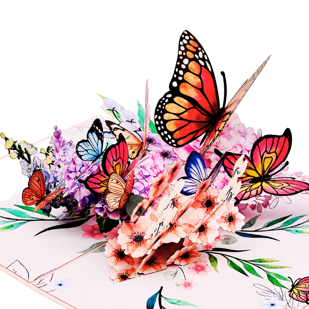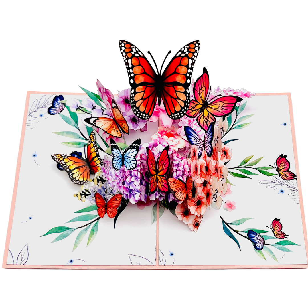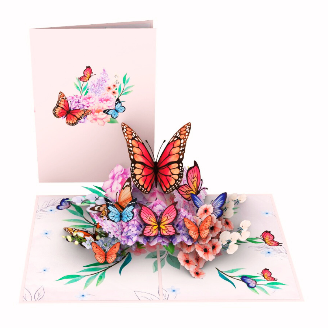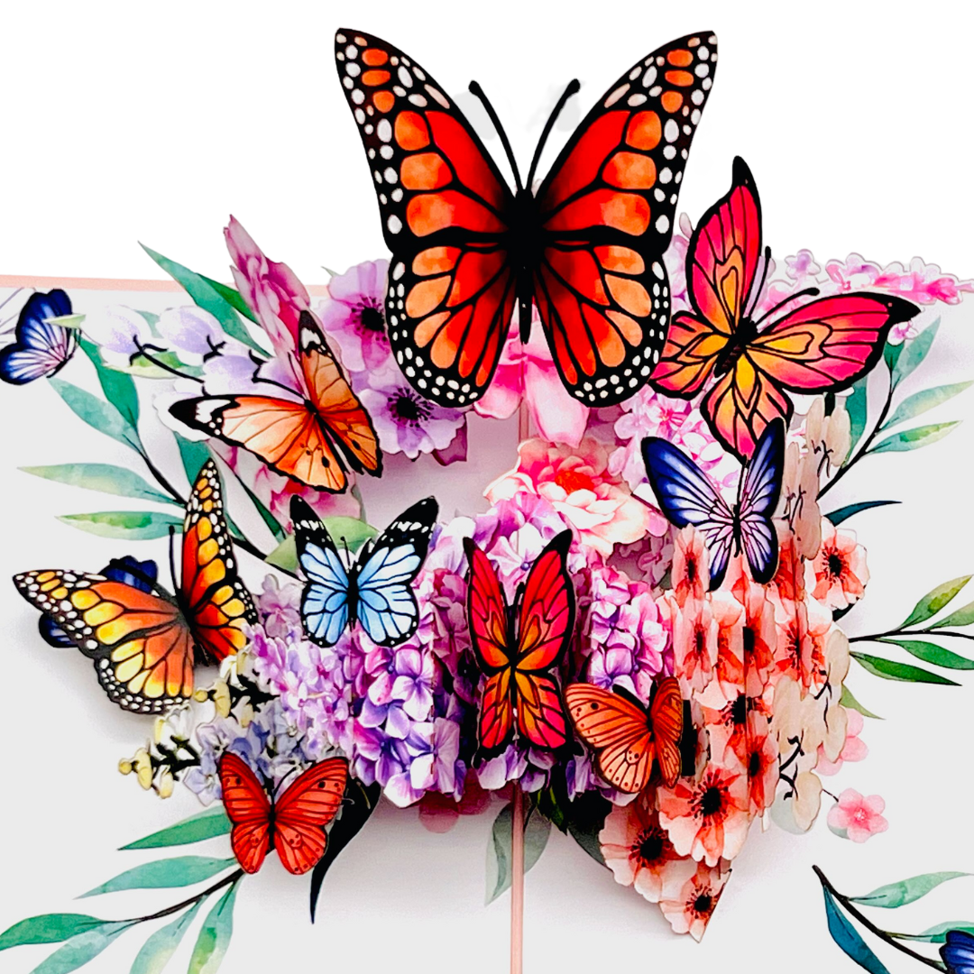 - Unique Design: A harmonious blend of colourful butterflies and hydrangeas that springs to life when the card is opened.