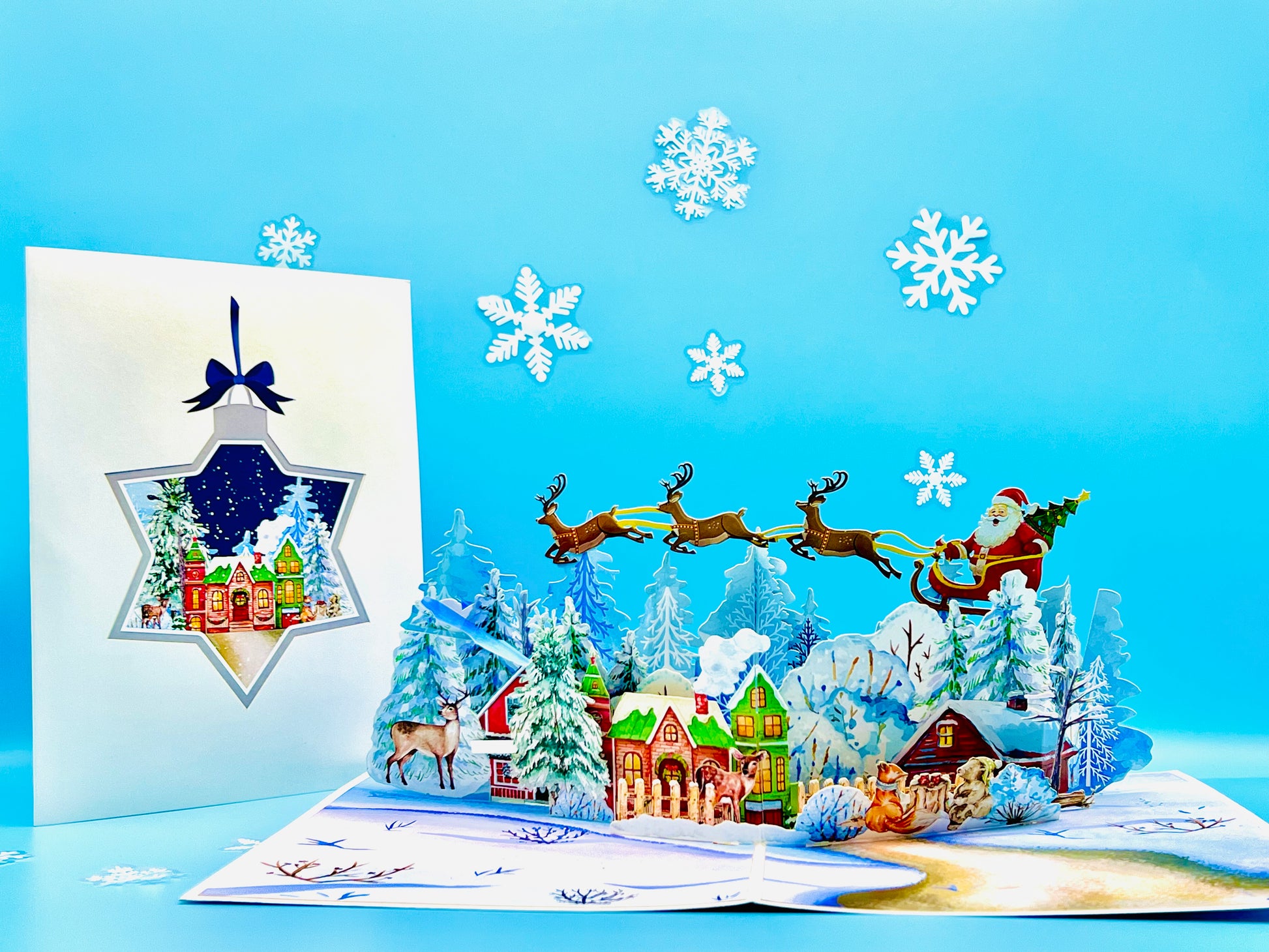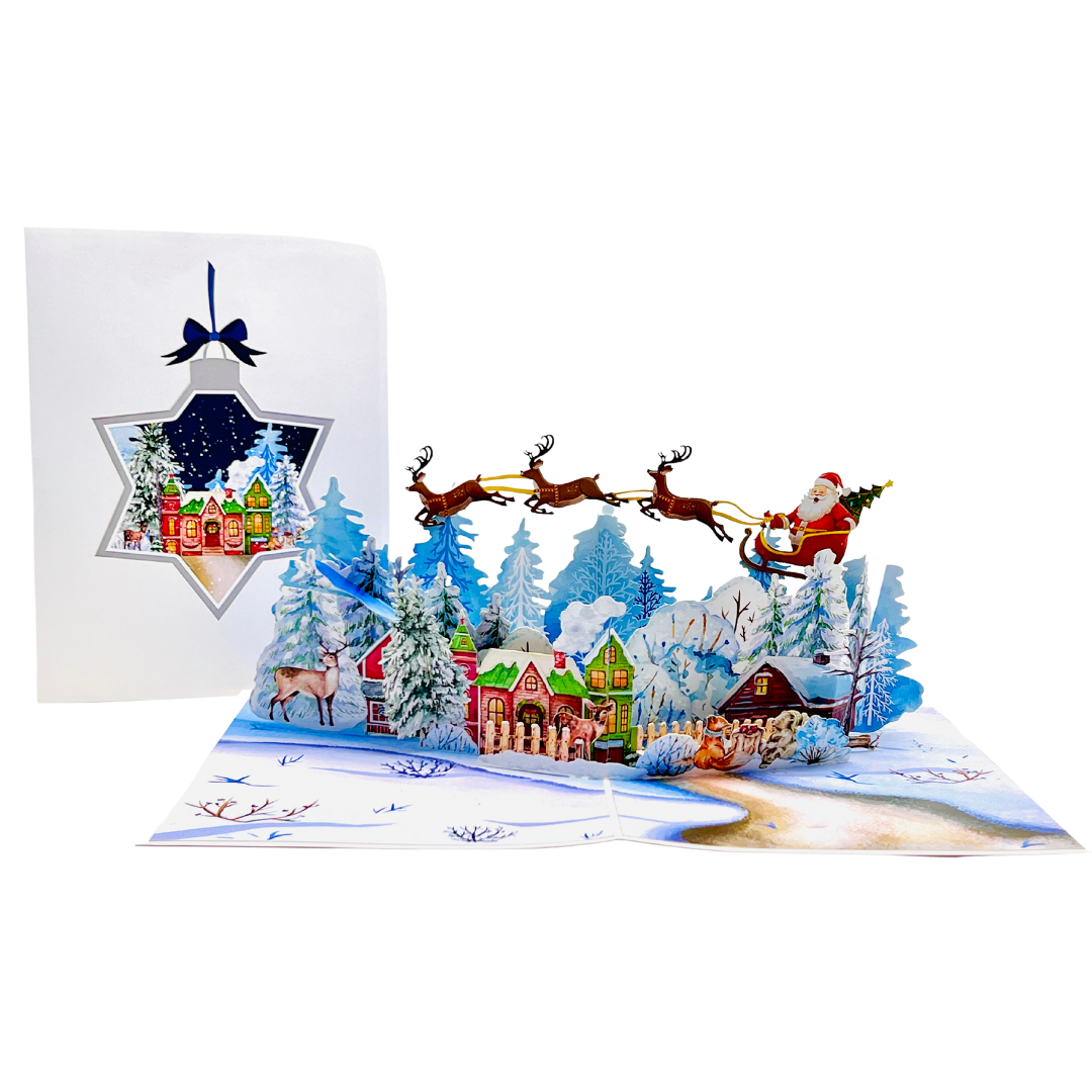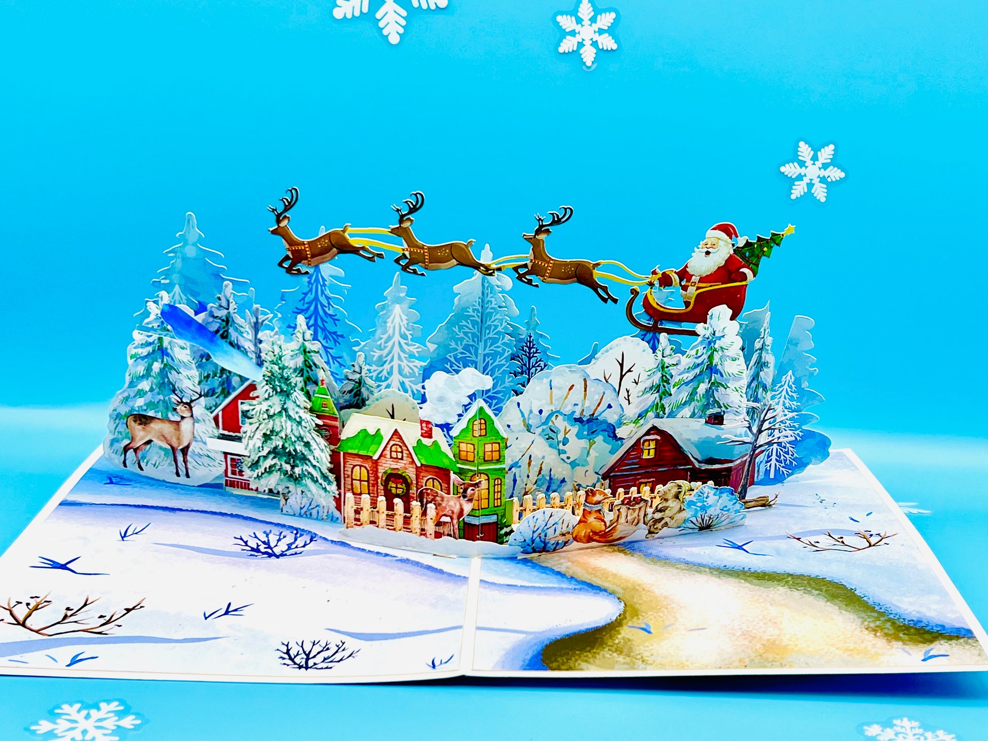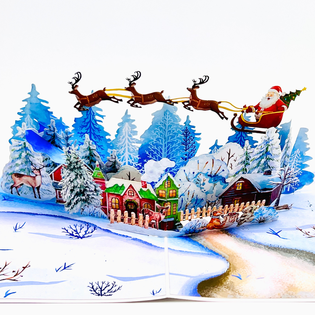 Christmas Santa's Magical Flight, 3D Winter Wonderland 3D Pop-Up Greeting Card