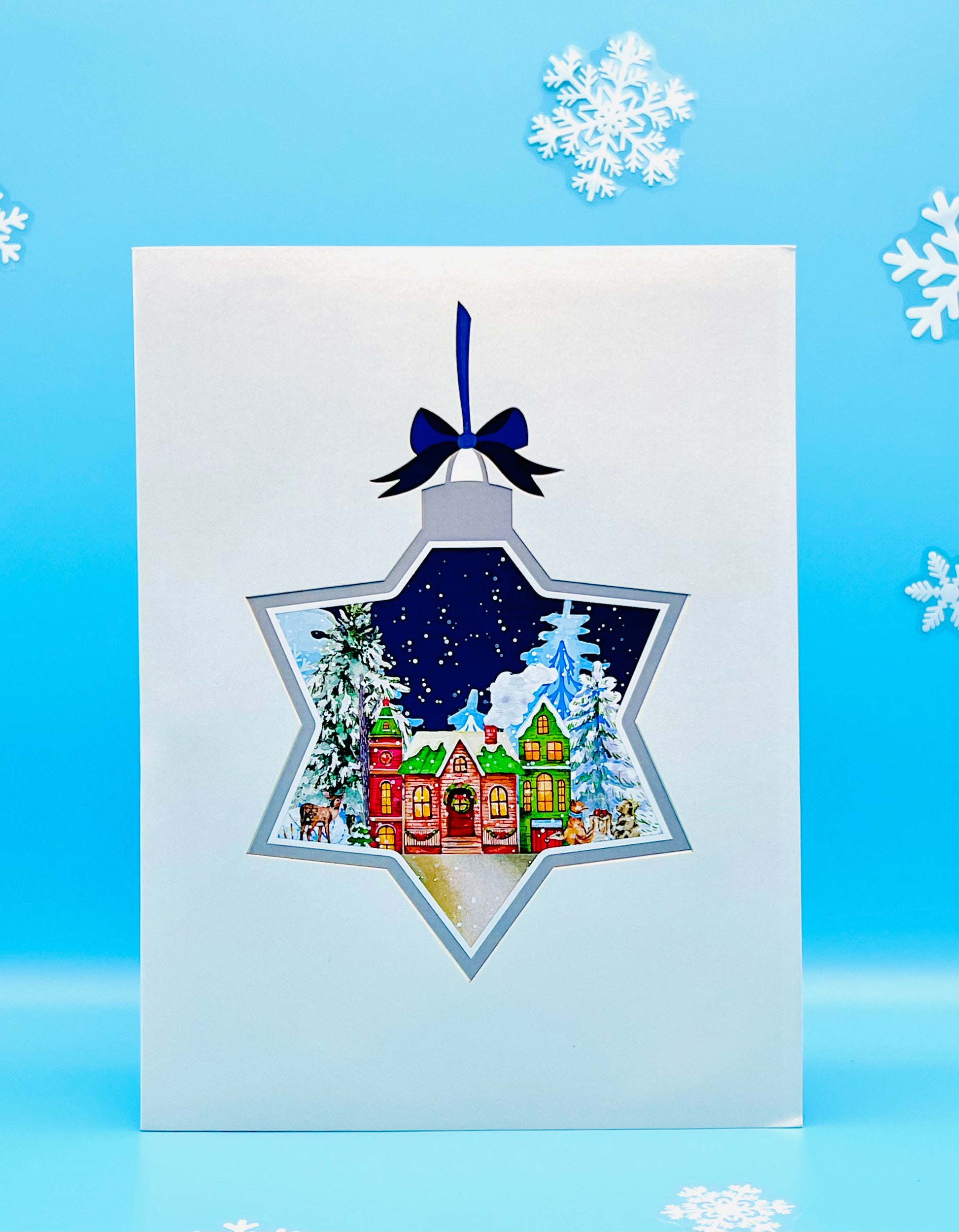 Made with premium materials, the intricate details — from the frosted trees to the cozy cabins — promise a sense of wonder and nostalgia. Whether you're sending warm holiday wishes or looking for that standout piece for your festive collection, this card is sure to leave an indelible impression. Its large size provides ample space for personalised messages, making it not just a card, but a treasured keepsake.