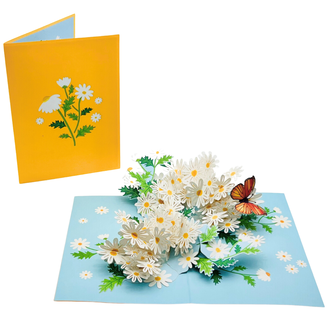 - Dimensions: Daisy pop up card is approximately 13x18 cm