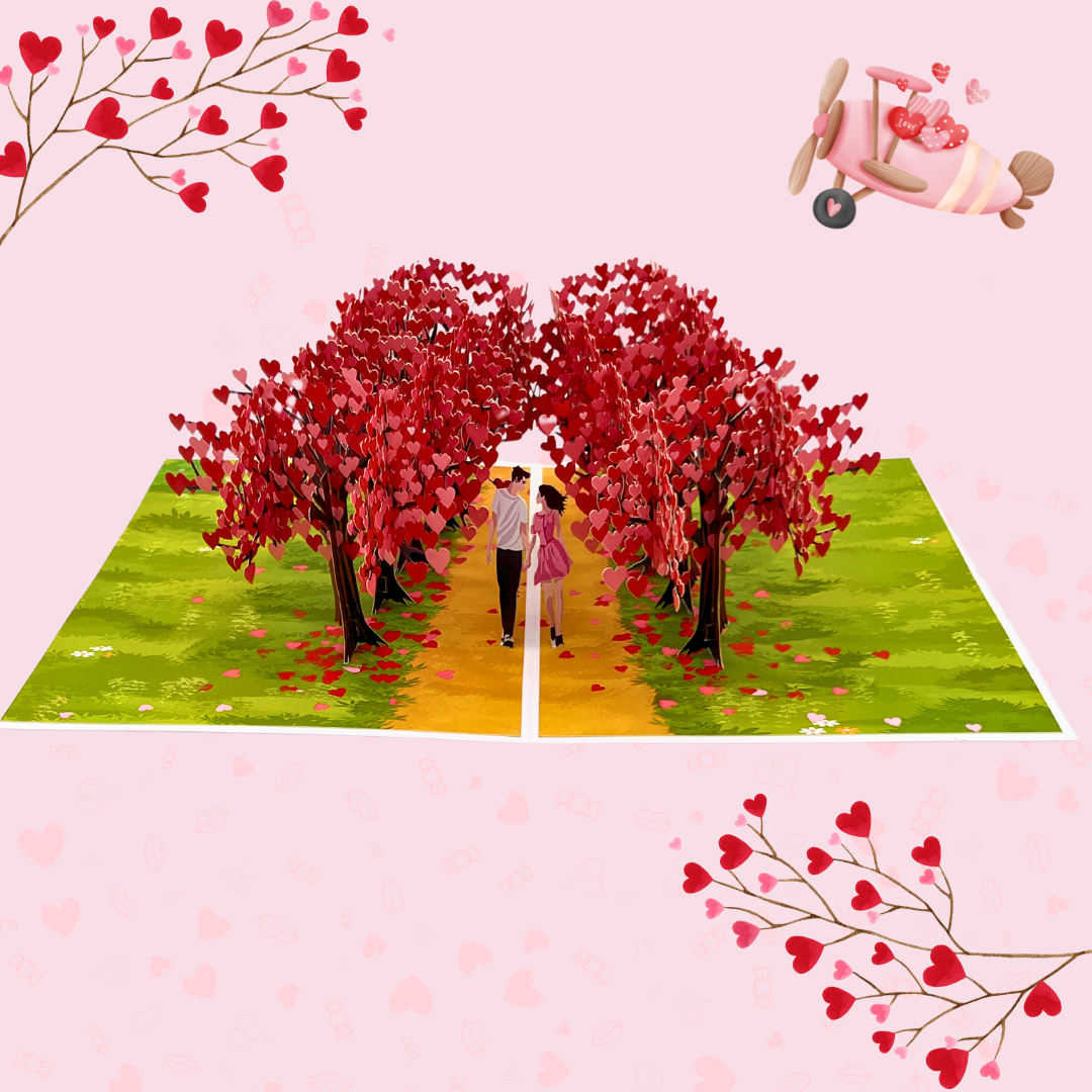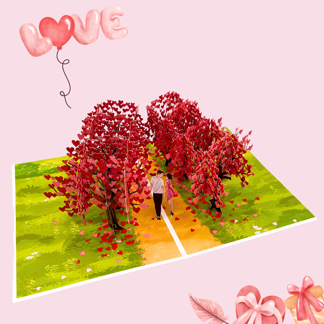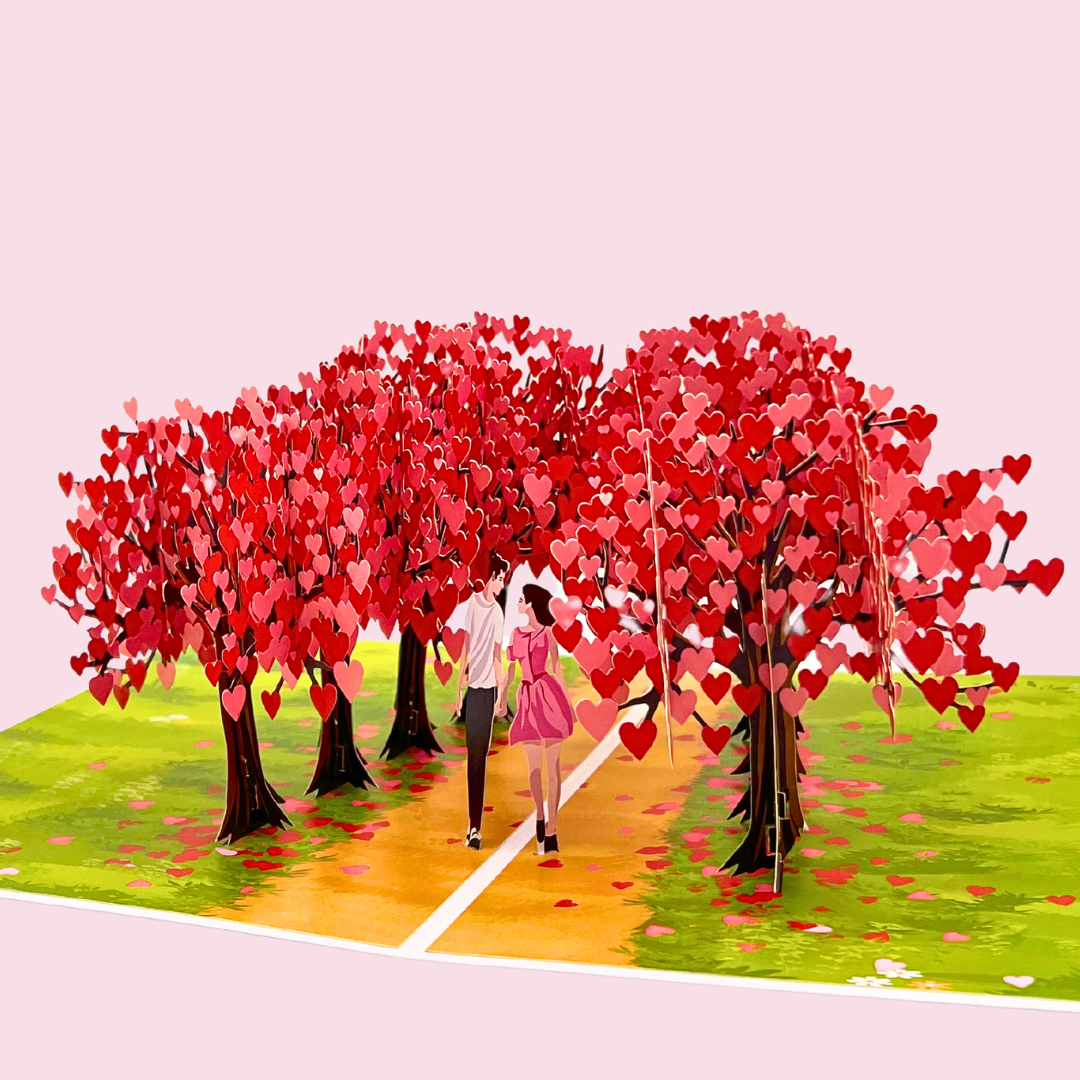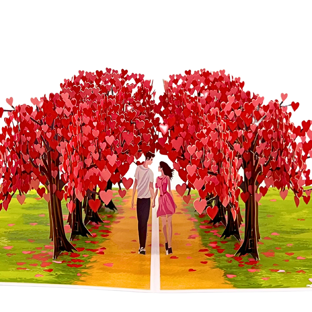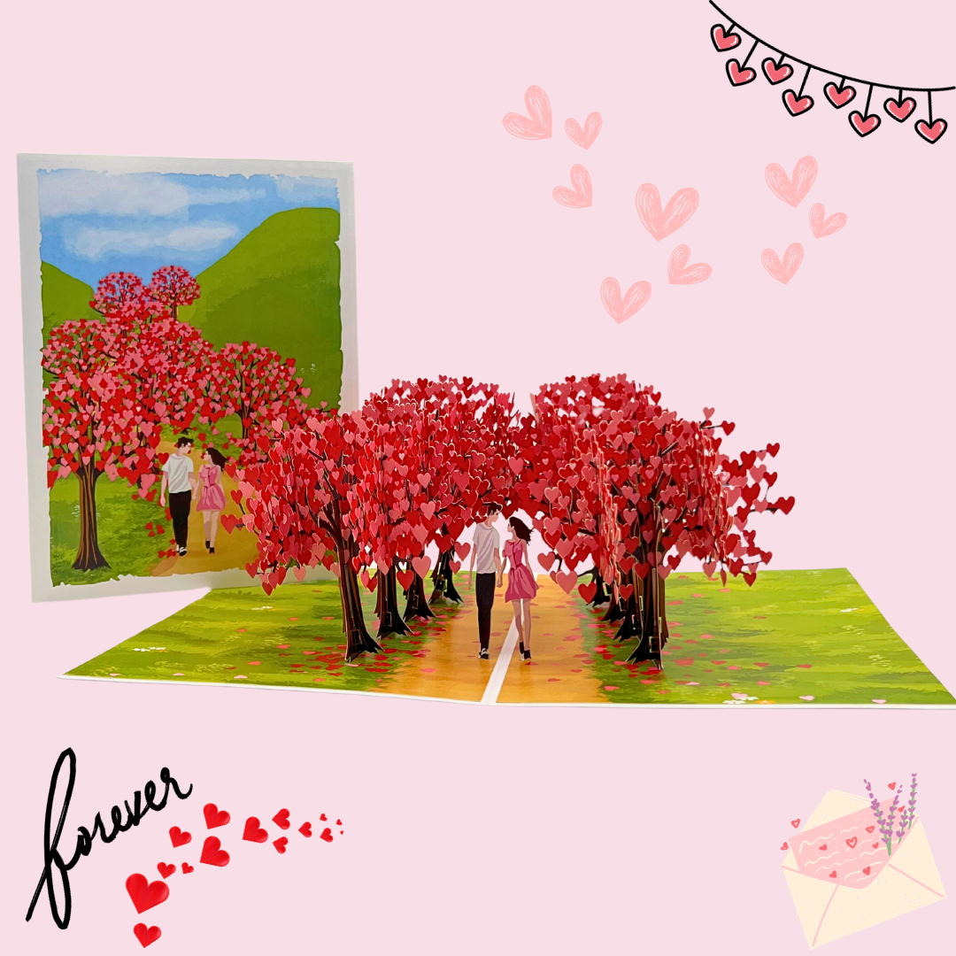 Lovers' Lane Heart Tree Avenue 3D Pop-Up Card Anniversary Valentines Day Wedding Engagement greeting card