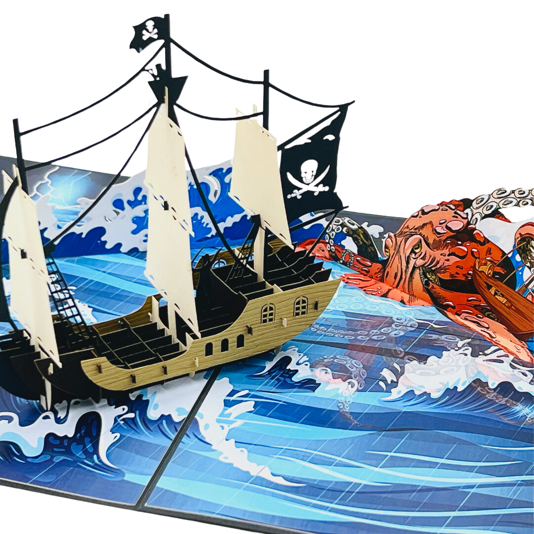 - Dive into the legends of the sea and bring them to life with our Kraken and Pirate Ship Pop-Up Card. Order yours now and embark on an unforgettable journey!